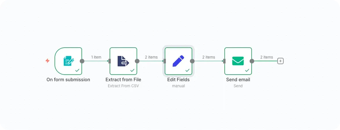 When I’m done here I will continue to work on the onboarding and apple login of the new app I work on. I am really looking forward to this again. Having as many different points to work on stresses me out a little. So I try to keep the focus on the app and the Fotoprints.shop. Oh and yes! Here is my n8n flow to send marketing mails. Super basic, but I can upload a csv with emails and a nice looking eMail will be sent automatically to all those emails.